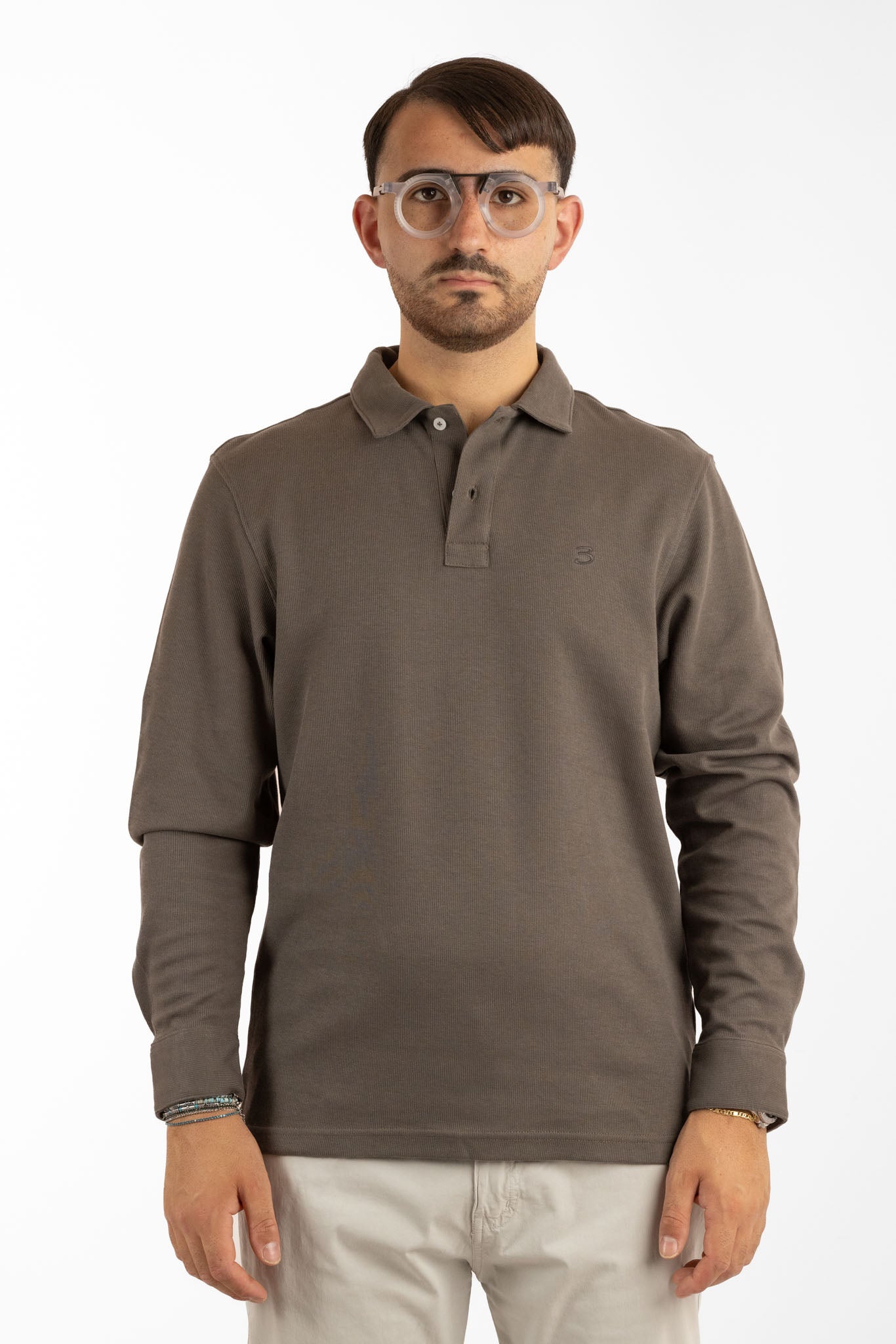 Polo in caldo cotone lavorata manica lunga, tessuto con trama piquet a costine