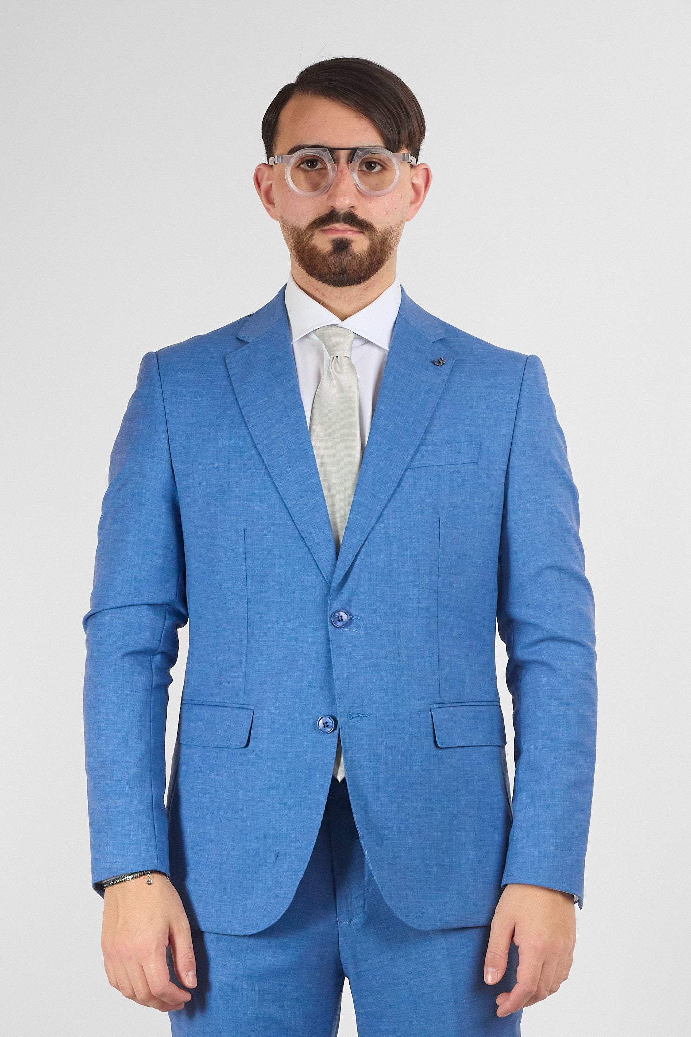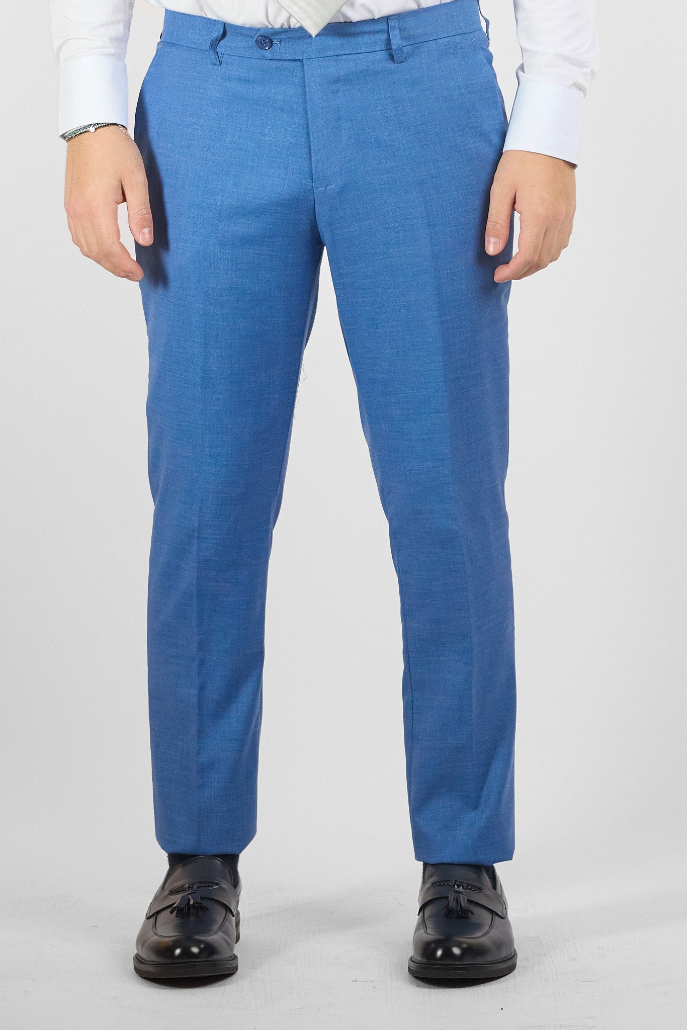 Abito due bottoni tessuto basic. Abito con pantalone modello slim. Il pantalone presenta tessuto extra interno per essere allargato ulteriormente fino a 4 centimetri.