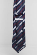 Cravatta Tre Pieghe Regimental Fondo Blu Riga Bianca e Bordeaux | 2 Per €20