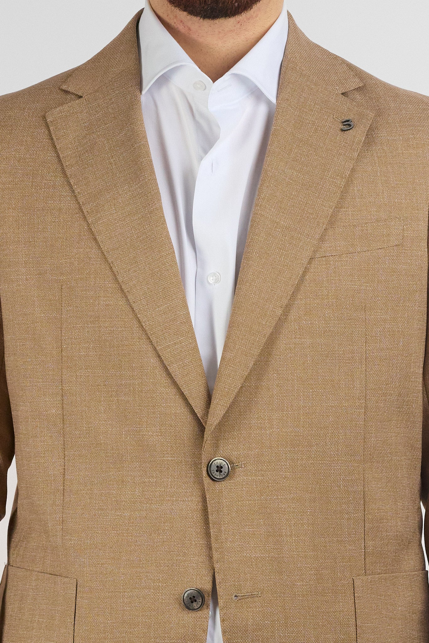 1. Chiudi la giacca e misura da un lato all'altro all'altezza del bottone ( prendi come riferimento il bottone superiore se la giacca è a due bottoni o il centrale se è a 3)