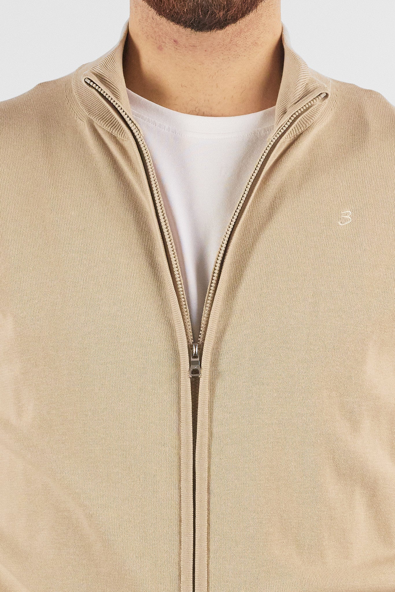 Basic Full-Zip Pullover in 105% Cotton | 2 for €50 | Beige 45