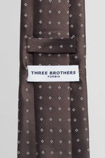 Cravatta Tre Pieghe Rombetti Bianchi su Fondo Marrone | 2 Per €20