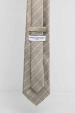 Cravatta Tre Pieghe Regimental Thin Fondo Beige Riga Bianca | 2 Per €20