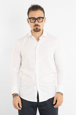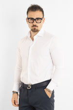 Chemise slim fit à double torsion infroissable avec rayures assorties 5185 | Blanche